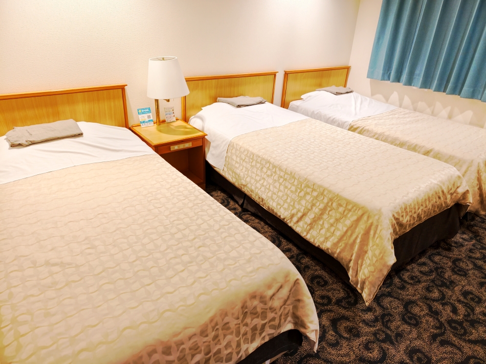▼房間到囉~~這次我們是兩大三小一起來沖繩,所以訂的是五人房,一打開看到裡頭是五張單人床也太棒了吧!爸爸媽媽再也不用跟小朋友擠同張床,可以好好地睡上一覺~~我們訂的五人房含早餐一晚加稅後是4千多元,算是還能接受的價格,畢竟位於國際通附近的飯店都不便宜。