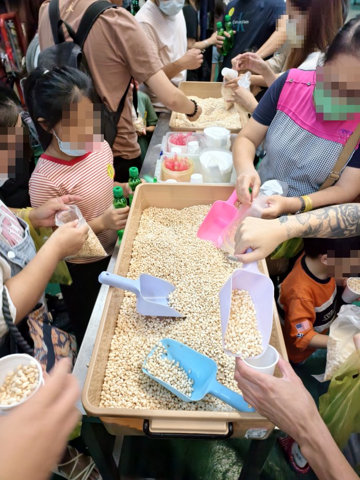 ▼接著就讓大家自由裝袋,可以用杯子或塑膠袋裝回去慢慢吃,雖然沒什麼調味但純粹的米香還是讓小朋友吃得津津有味。