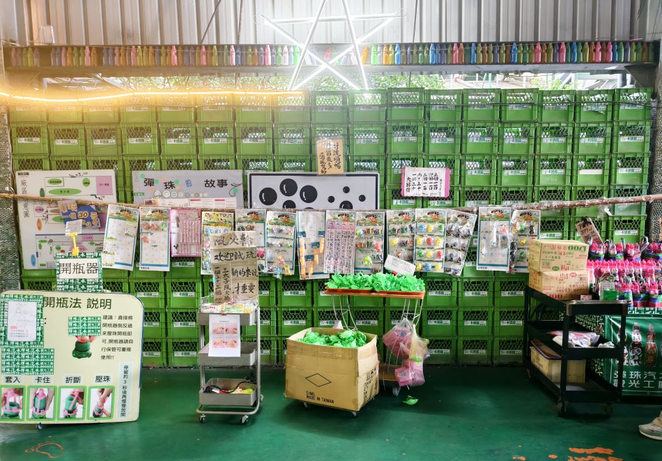 ▼用彈珠汽水瓶裝飾的打卡區真的超很壯觀~~搭配自己做的彈珠汽水格外有FU啊!