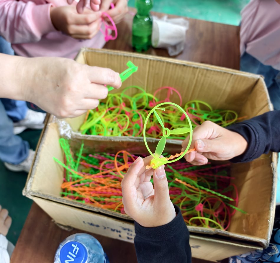 ▼等待的時間可以先到旁邊玩古早味童玩,這裡有提供滾鐵圈、釣瓶子等,小朋友也跟著來挑戰看看。
