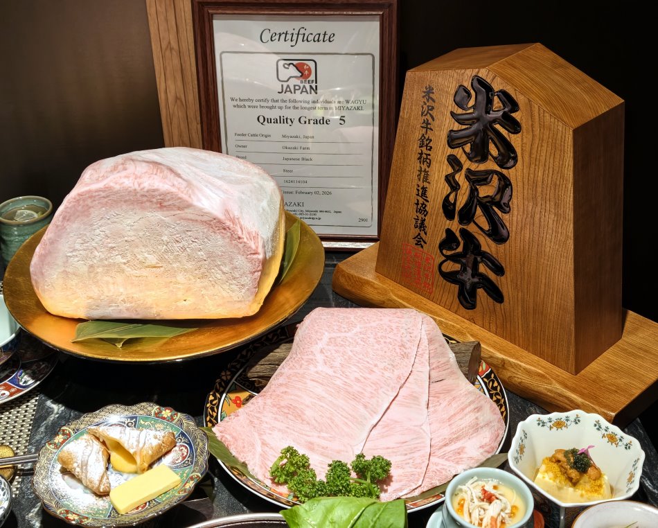 ▼米澤牛來自於嚴寒氣候與豐饒自然環境,脂肪富含油酸,熔點非常低,但吃起來不會有油膩感,反而是一種帶有奶油香氣的甜味,質地絲滑如綢緞,是高級又奢華的和牛品牌。