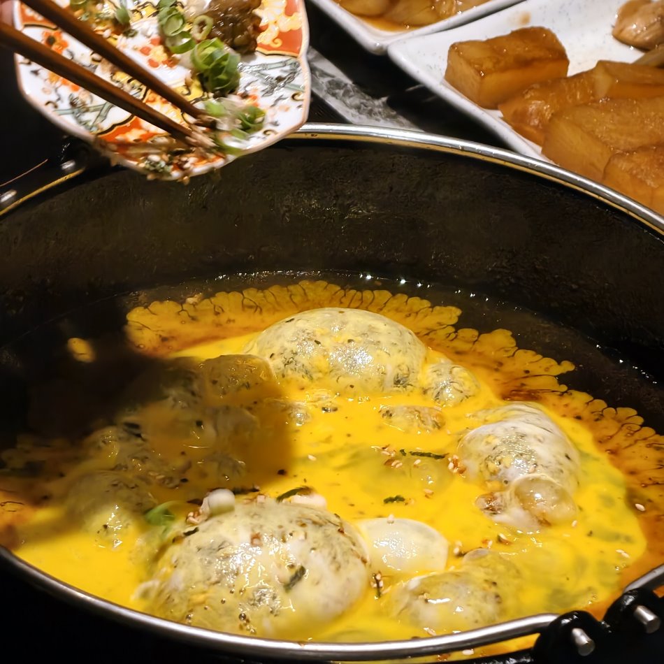 ▼玉露鮮蝦真丈湯,真丈也就是蝦丸,採用蝦滑、山藥製成,口感蓬鬆軟Q,保有蝦肉的彈牙,咬下時散發出鮮蝦的清甜;最特別的是湯頭融入了玉露綠茶的優雅清香,翠綠清澈的湯底中,茶葉的甘甜尾韻巧妙地平衡了蝦肉的鮮度,入喉後回甘悠長,清爽無負擔。