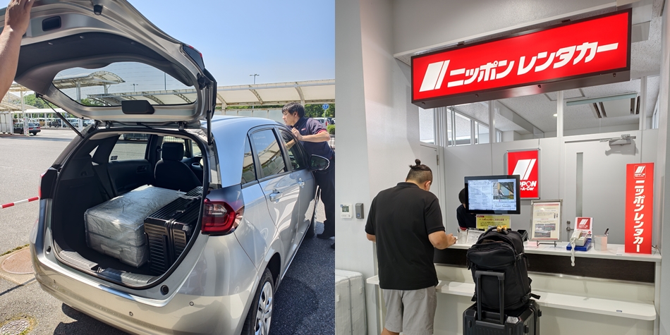 ▼吃飽喝足後我們回到機場一樓,大廳就有一整排的租車櫃台, 我們預訂的是這間NIPPON Rent-A-Car,辦理好手續後就可以走到機場旁的店面來取車,檢查沒問題後就可以出發了,在機車就能領車算是相當方便,還車也是直接開到原本取車位置即可。