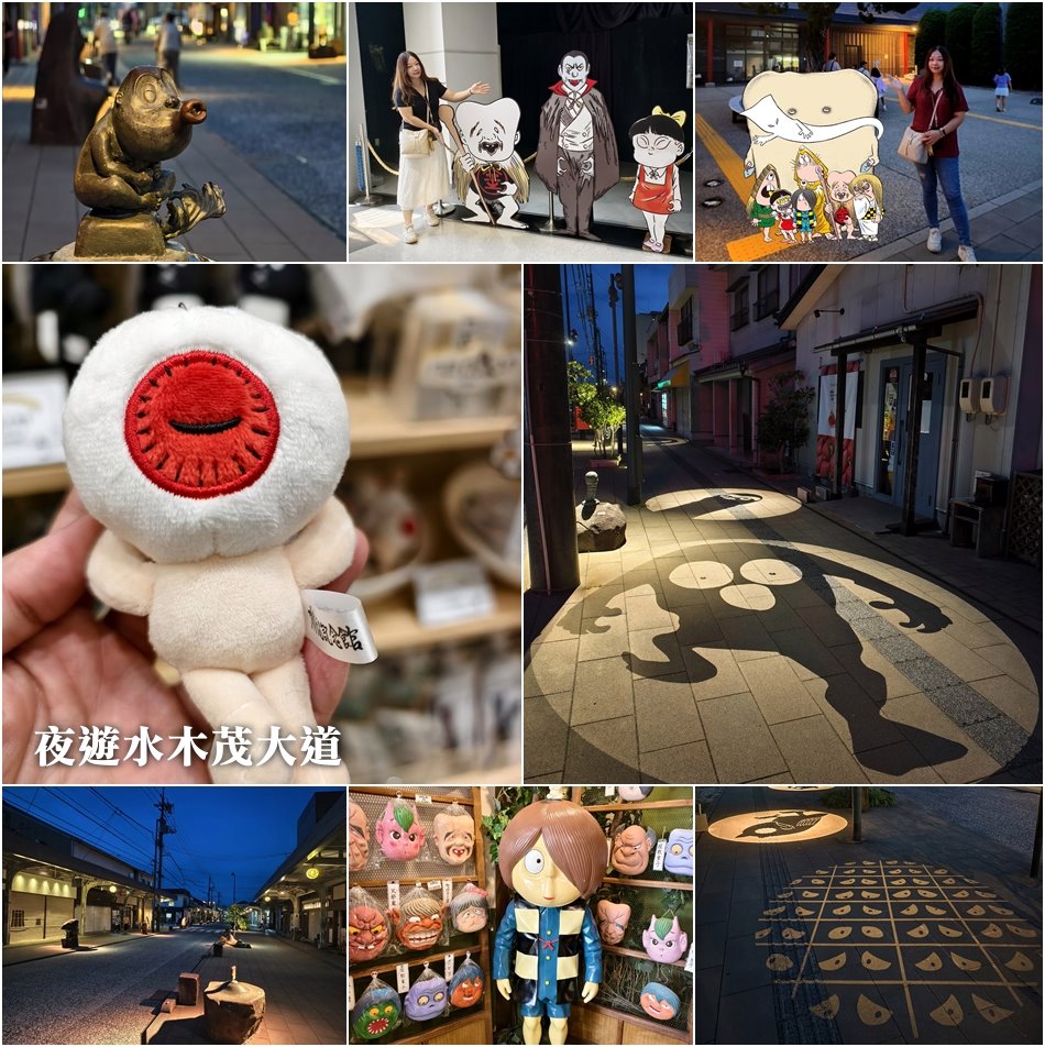 ▼水木茂大道最主要的景點就是水木茂紀念館,可以看見水木茂老師的生平事蹟及多幅珍貴手稿,也可以購買鬼太郎相關紀念品;水木茂大道也很好逛,不過周邊店家比較早關門,建議早點來比較熱鬧~~沒想到晚上來水木茂大道的“夜行妖怪之旅”也非常促咪,先到觀光案內所花500日圓就可以買到序號登入網頁,沿途有10個AR互動點,可以跟妖怪合照,也可以聽到妖怪講話的聲音,建議可以自備耳機更清楚,晚上突然聽到鬼叫聲真的會嚇一跳(笑);而且還有不少店家優惠可以使用,晚間水木茂大道地板也會有妖怪投影,拍起來格外有感覺,有興趣的朋友別忘了來個夜晚尋找妖怪之旅!