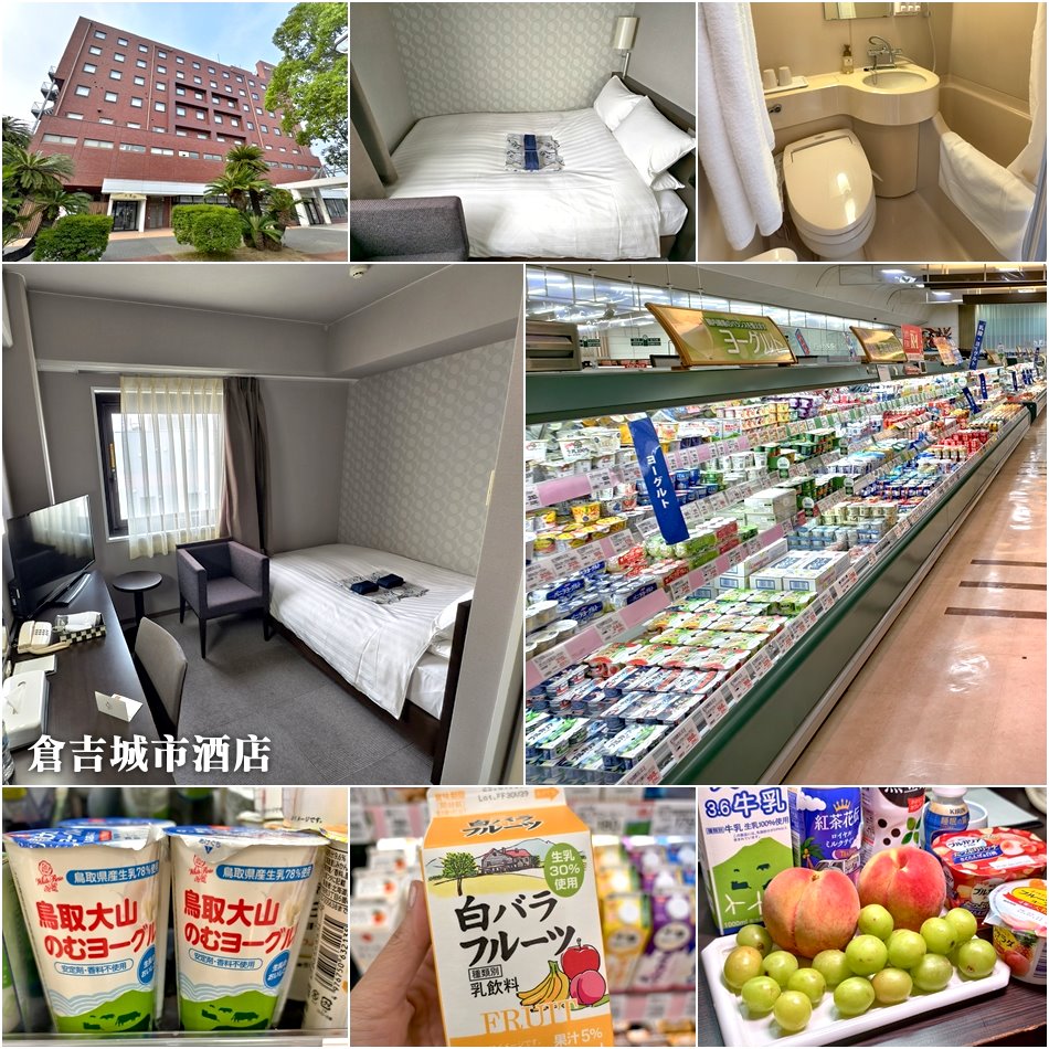 ▼晚上入住的是倉吉城市酒店,距離倉吉車站車程只要3分鐘,這是間商務旅館,房間簡約小巧,不過有浴缸加分不少,一樓附有大浴場,泡完澡通體舒暢;旁邊就是大型購物中心,而且還有超市,我們買了大山果汁牛乳、水蜜桃、葡萄、優格等回來當宵夜,吃飽喝足就可以安心睡覺啦!